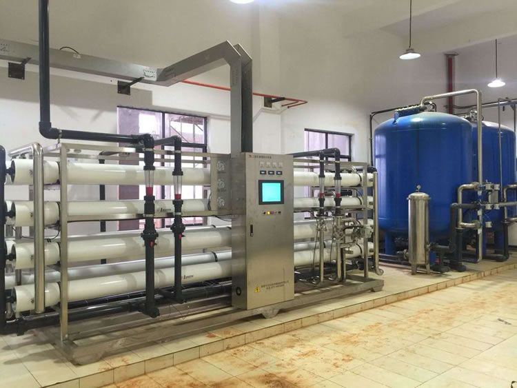 RO反滲透設(shè)備是采用膜分離手段來(lái)去除水中的離子,有機(jī)物,膠體微粒、細(xì)菌等雜質(zhì),使水達(dá)到脫鹽純化的目的。其原理是水與溶液以滲透膜相隔,水則向溶液滲透,兩相之間有滲透壓,若在溶液相上加壓,使壓力大于滲透壓,則溶液中的水就會(huì)向水相反滲透去,利用反滲透而取得脫鹽水。即原水在足夠的壓力下,通過(guò)滲透膜而變成純水,沒(méi)有通過(guò)膜的水,其溶解物、懸浮物的濃度逐漸增大,作為濃水排出。