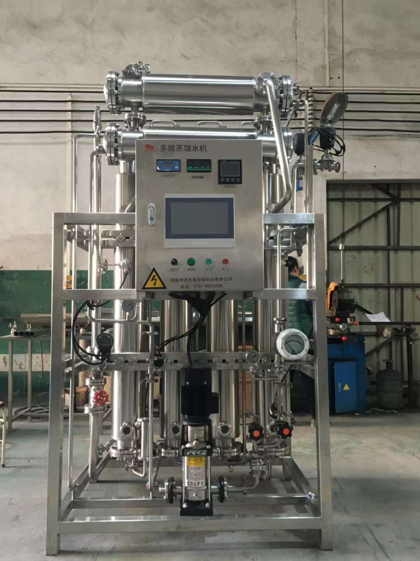 整機(jī)由蒸發(fā)器、預(yù)熱器、冷凝器、水泵、管道、電器、檢測(cè)部分組成。具有設(shè)計(jì)獨(dú)特、制造精良、結(jié)構(gòu)緊湊合理、運(yùn)作安全可靠、安裝維修、操作簡(jiǎn)便易學(xué)、保養(yǎng)方便等特點(diǎn)。蒸發(fā)器采用列管式,降膜法原理,設(shè)計(jì)先進(jìn)的料水分布器,使料水均勻地布膜流動(dòng),消除了局部料水不均造成的干壁現(xiàn)象。大大提高該設(shè)備的換熱效果,具有出水量大等優(yōu)點(diǎn)。本機(jī)生產(chǎn)的蒸餾水,純度高、無(wú)熱原完全符合《中國(guó)藥典》(2020年版)中“注射用水”的各項(xiàng)質(zhì)量指標(biāo)規(guī)定。